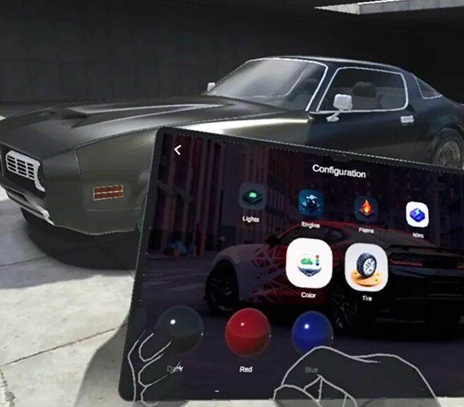 Cette application en réalité virtuelle, développée à partir de la technologie Gaussian Splatting, permet d’explorer un garage de maintenance en immersion totale grâce à un casque de réalité virtuelle.
